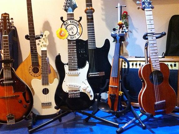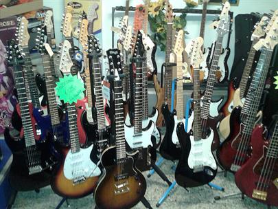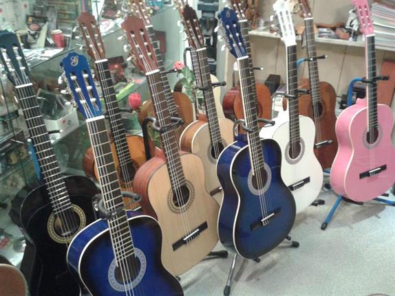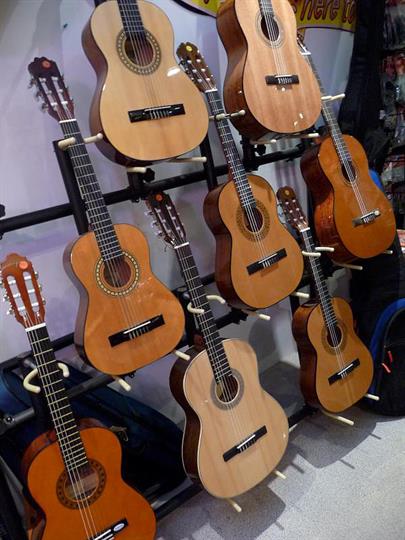 Muziekwinkel Stage Music Shop heeft een uitgebreid assortiment aan klassieke, western- en elektrische gitaren in diverse prijsklasses. Bekende merken zijn ondermeer Juan Salvador, Crafter en Fender. Stage Music Shop is officieel Fender squier-dealer. Klassieke gitaren zijn ook verkrijgbaar in half, driekwart en zevenachtste formaat (voor kinderen). Voor wie op zoek is naar een kleurige gitaar: Stage Music Shop heeft gitaren in afwijkende kleuren als rood, roze, paars, blauw, zwart en geel, al dan niet voorzien van glitters of bloemenprints.